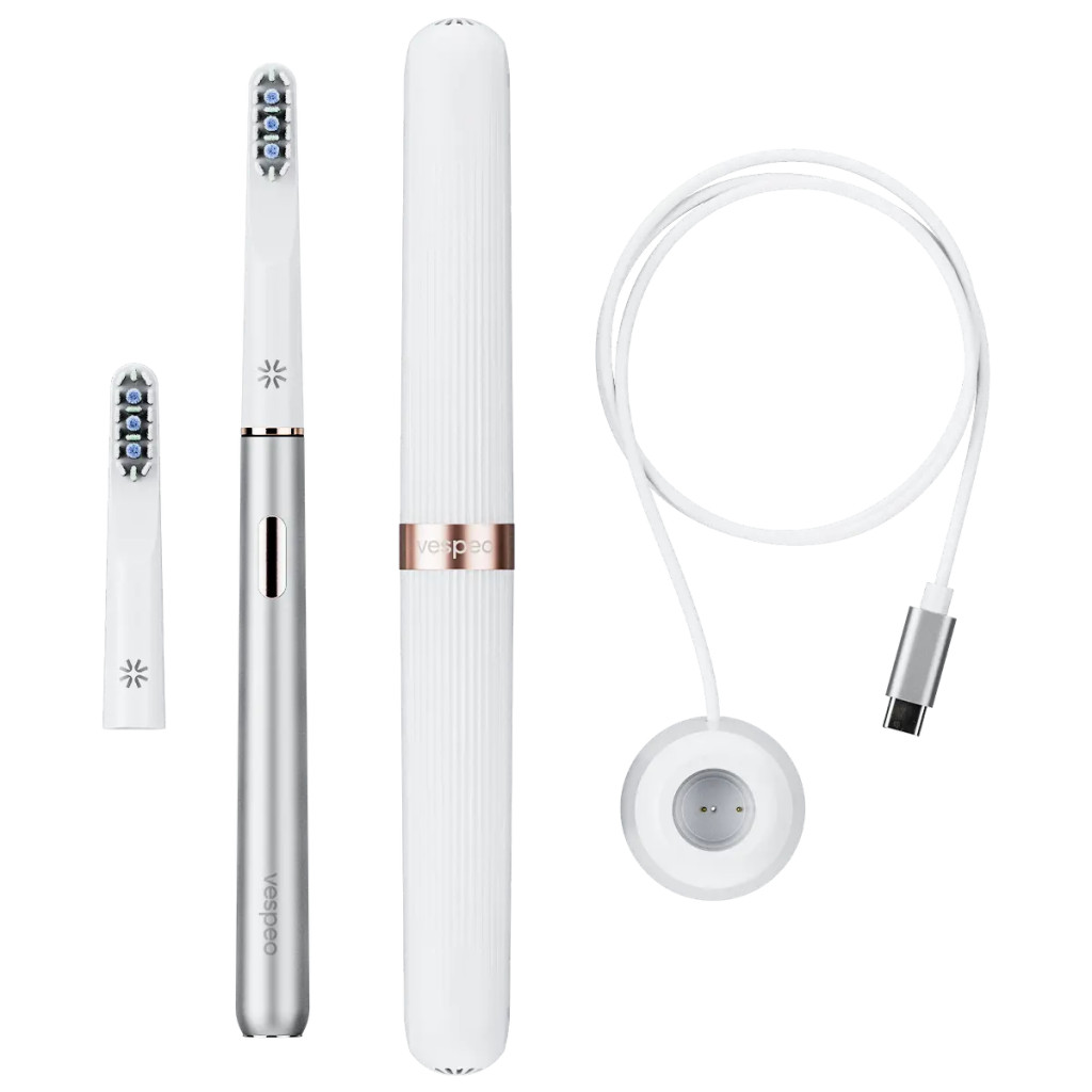Pulzáló rezgéseket használ a foltok eltávolításához és a fogak fehérítéséhez.